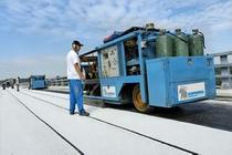 MACADEN® : machine de pose de membranes bitumineuses, développée exploitée par SOPREMA depuis plus de 10 ans et destinée à la mise en oeuvre de bobines de membranes bitumineuses thermosoudables sur les ouvrages d'art et les parkings.MACADEN® : machine de pose de membranes bitumineuses, développée exploitée par SOPREMA depuis plus d...