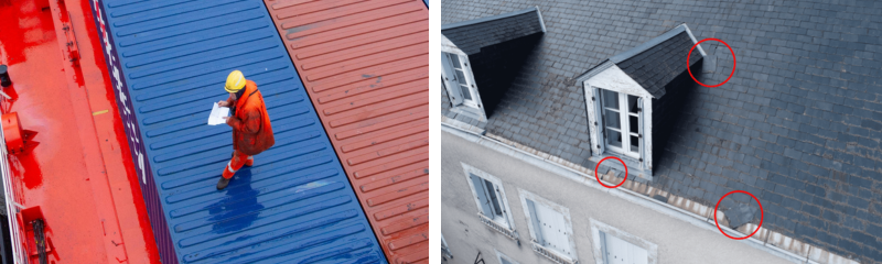 Coberturas industriais e logísticas, onde o grande tamanho dificulta a inspeção visual convencional.