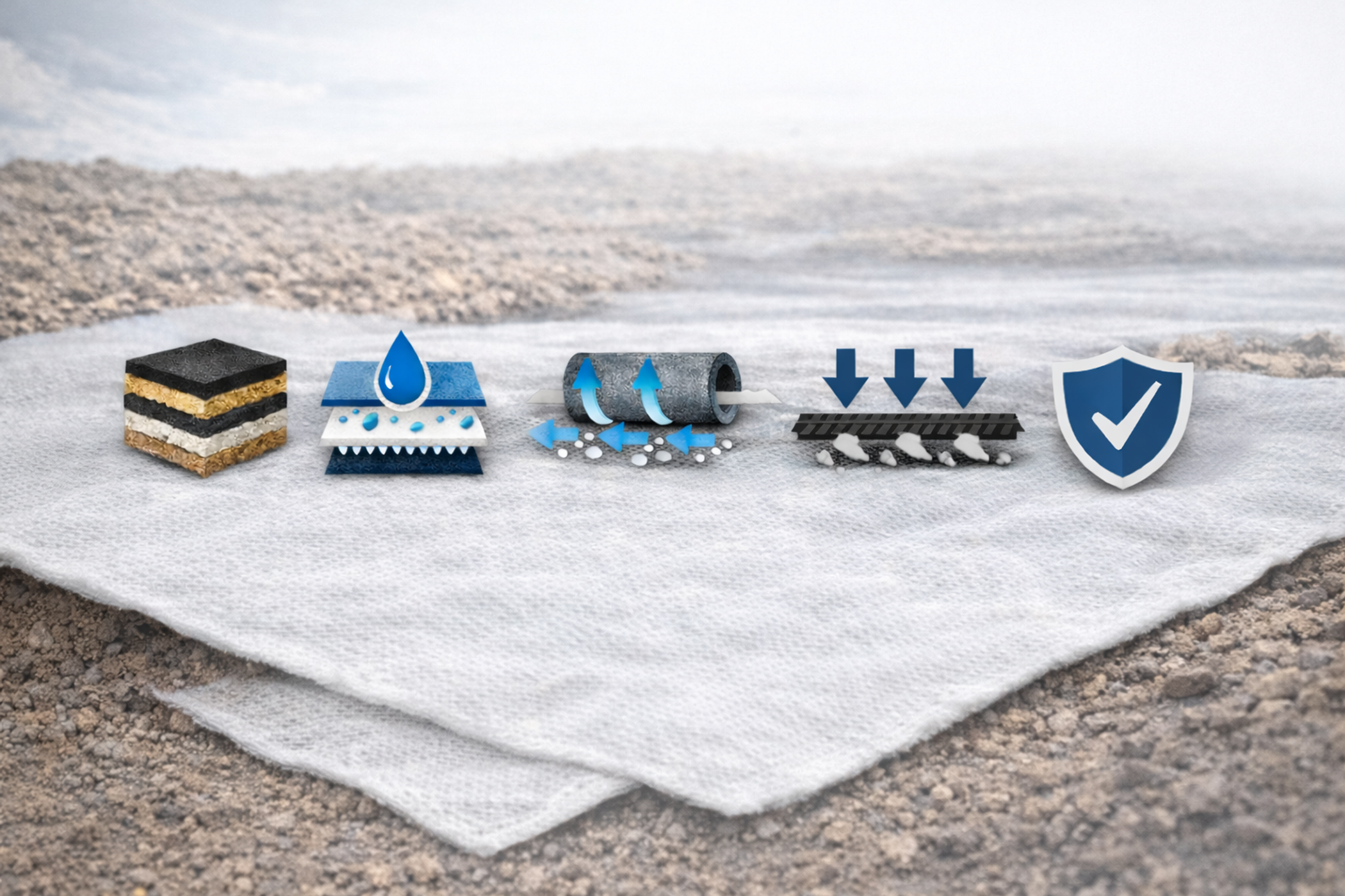 Os geotêxteis são materiais geossintéticos versáteis que desempenham funções essenciais em sistemas construtivos e infraestruturais, nomeadamente na melhoria do desempenho mecânico e hidráulico dos solos em obras de engenharia civil.