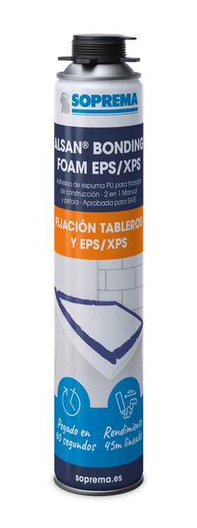 Adesivo, monocomponente, de espuma de poliuretano de cura húmida. Adesivo de baixa expansão, recomendado para a colagem de placas de isolamento térmico, especialmente placas de EPS, XPS e PU.