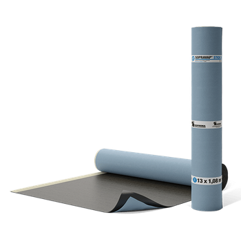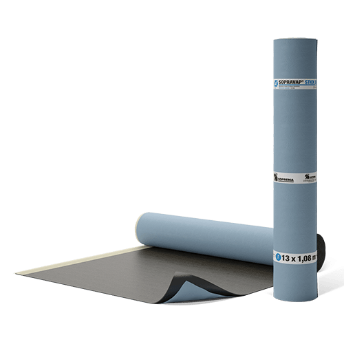 SOPRAVAP STICK S 16 é usado como barreira ao vapor autoadesiva em coberturas metálicas tipo deck, coberturas de betão e em painéis de madeira.