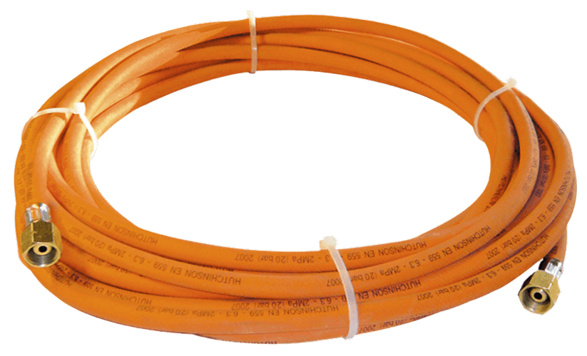 Mangueira flexível de borracha para maçarico butano/propano em fase gasosa com um comprimento de 10 metros.