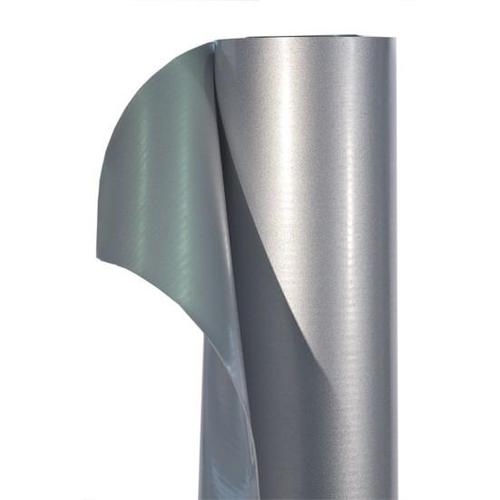 Produzida com um revestimento posterior composto de partículas poliméricas de alumínio incrustadas na superfície da membrana que oferece características estéticas e longa duração similar a uma folha flexível de alumino.