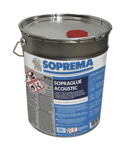 SOPRAGLUE ACOUSTIC é uma cola de contacto à base de solvente, recomendada principalmente para a realização de trabalhos de isolamento acústico.