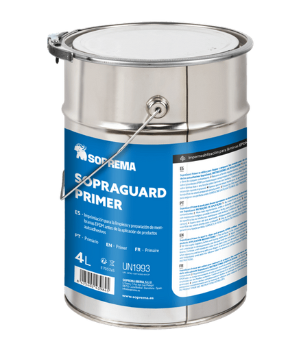 O Sopraguard Primer é utilizado para limpar e preparar as membranas de borracha EPDM antes da aplicação dos produtos autoadesivos.