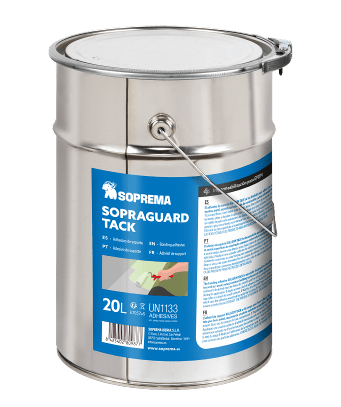 O Sopraguard Tack é um adesivo de colagem por contacto, concebido para aderir membranas EPDM e TPO a diferentes tipos de suportes: betão, madeira, alvenaria, metal e outros suportes aprovados.