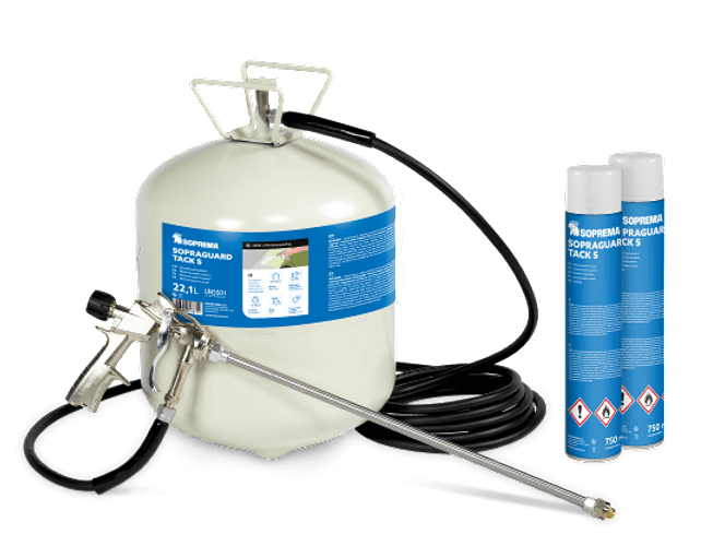 O adesivo de colagem por contacto Sopraguard Tack S é um adesivo pulverizável concebido para colar membranas EPDM a diferentes tipos de suportes: betão, madeira, alvenaria, metal e outros suportes aprovados.