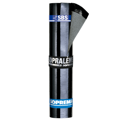 SOPRALENE ELITE FP 6 KG MIN é uma membrana de impermeabilização betuminosa auto protegida, de betume elastomérico SBS de alta qualidade com flexibilidade a baixas temperaturas até ≤ -25 ºC, com armadura de feltro de poliéster de alto desempenho reforçado com fibra de vidro, com acabamento mineral na face superior e filme termo fusível de BOPP na face inferior.